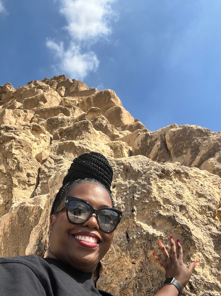 I’ve visited 33 countries, and this by far was one of my best trips! Just seeing those pyramids in person was amazing! Like HOW?! The Egyptian pyramids were built as tombs for pharaohs and other high-ranking officials. The construction of pyramids dates back to around 2630 BC during the Third Dynasty of Egypt. The most famous pyramids are located on the Giza Plateau, near Cairo. The three main pyramids are known as the Great Pyramid of Giza, the Pyramid of Khafre, and the Pyramid of Menkaure. The Great Pyramid, built for Pharaoh Khufu, is the largest and the only surviving of the Seven Wonders of the Ancient World. Which is an amazing sight to see!!!! For me the Pyramids always looked smooth but seeing them up close, they are far from smooth.